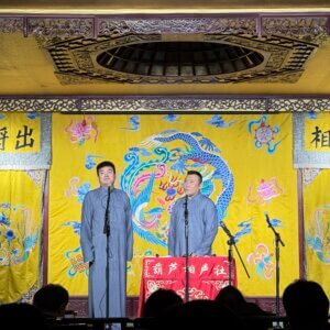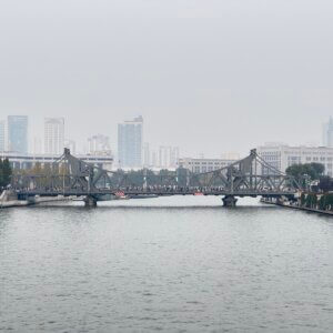 今天天气果然不错!上午在酒店吃过早餐(吃饭时让做饭师傅做了一个巨难吃的煎饼果子,难受到我了),就收拾出门准备去葫芦相声社听相声。打车到鼓楼地铁站,因为看去其他地方的路线都太堵了,到了鼓楼地铁站后,发现原来在进行马拉松比赛,封路了,我们就沿着鼓楼的外围走向了葫芦相声社,看了一路的马拉松选手。听相声是提前一天原价买的一个学生手里的票,因为马拉松的缘故,不止是很多观众迟到,连演员都迟到了,除了开头热场的一位男女搭档的相声演员,剩下有四场,到 12 点半结束,惊喜的是今天的演出最后一场是张斌,还是非常幸运!听完相声都快 1 点了,我们决定去鼓楼里面逛逛,发现人特别少,都是卖古玩一类的,非常萧条,然后我们就返回鼓楼地铁站,坐了两站,去看了梁启超故居,但自己上学时就学不会历史,进入拍到了自己很满意的一张“不负今日”的照片,从梁启超故居出来就去了昨晚就去过的北安桥,看了大爷跳水,拍了网红打卡机位。坐在海河边休息一下就打车去了天津之眼,在它的脚下拍了几张更非主流的照片,然后就打车去到了解放桥,就是世纪钟广场那里,在世纪钟的对面,拍了照片后,就打车回了酒店,然后今天买了一些吃的,有些是带回去的,有些是现场吃的,在回酒店前,找人代购了中栗华巧克力蒸饼和中栗华豆馅蒸饼,然后又在酒店附近买了鸭油包,糕干,耳朵眼炸糕,然后带回酒店整理了一下,又出门吃了马记烧麦(猪肉茶树菇烧麦,很好吃!),找了一个地方拍了个照片,还了 action 和镜头后,就回酒店打车去高铁站了,今天的行程就这样结束了。中间打车,其中从酒店打车去鼓楼,以及从天津之眼打车到解放桥的司机特别能聊,第二个路线的司机还讲了很多天津的历史,把沿路的主要景点都给我们讲了一遍!依然附上手机上拍的一些照片!